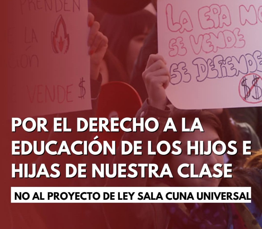 «Bajo el pretexto de favorecer la inserción laboral femenina, en los últimos días se aprobó en el senado el Proyecto de Ley Sala Cuna Universal. Este proyecto presentado, en primera instancia, bajo la administración de Piñera busca ampliar la lógica del voucher en la educación parvularia, promoviendo la entrega de subsidios a las mujeres trabajadoras formales y trabajadoras informales que cotizan en AFP. Este proyecto incentiva el mercado, la privatización y el lucro en la educación inicial, entregando fondos a las familias y debiendo las instituciones públicas y privadas competir por estos recursos.