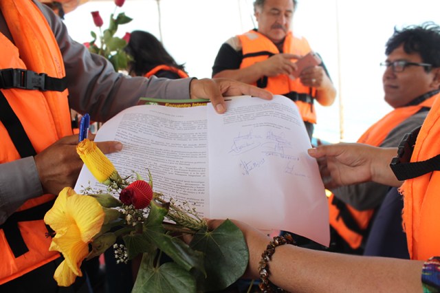 | A bordo de las embarcaciones a firmar el Acuerdo de Lima, que sella el 7° Encuentro. |
