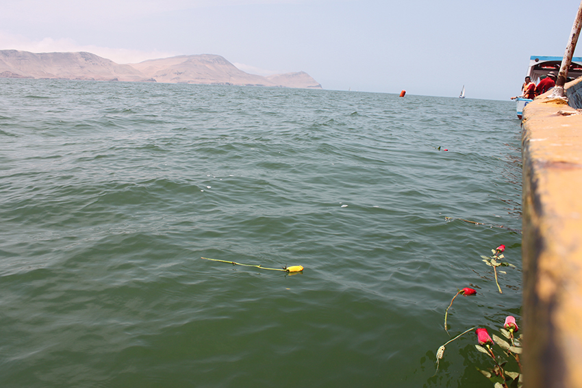 | Rindiendo un homenaje con cantos y flores a los caídos en el penal El Frontón |