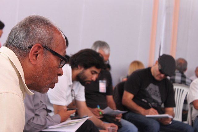 El compañero Percy Mendoza, quien preside la Mesa da lectura a las resoluciones de las Mesas temáticas, señala los puntos en que hay consenso y abre el debate de la Plenaria para escuchar las opiniones y fundamentaciones respecto a los puntos. Un intenso debate marca esta segunda jornada, donde el tema de la priorización es el punto clave.