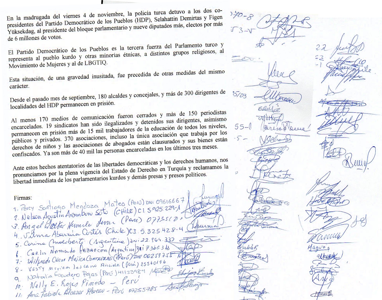 Esta odiosa e inhumana situación, compromete el Estado de Derecho y la dignidad de nuestra América. Por eso la importancia de reunirnos en Lurigancho, denunciar ante el mundo estas atrocidades y exigir a las autoridades peruanas el respeto básico a las garantías individuales que contempla la legislación internacional en Tratados y Convenciones, de las que el Estado peruano es signatario.