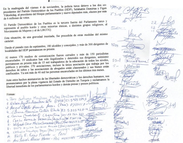 A las 11 horas del día viernes 2 de diciembre, se reanuda el 7° Encuentro, con la lectura de la declaración del Comité contra la Persecución y por la Libertad de los Presos Políticos, Chiapas, México; el saludo del Frente Magisterial Independiente Nacional, Chiapas, México; el saludo y la petición del Partido Democrático de los Pueblos (HDP) de Kurdistán, que nos pide firmar peticiones por los cientos de encarcelados el viernes 4 de noviembre en Turquía.