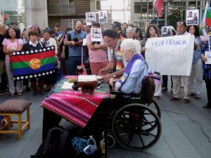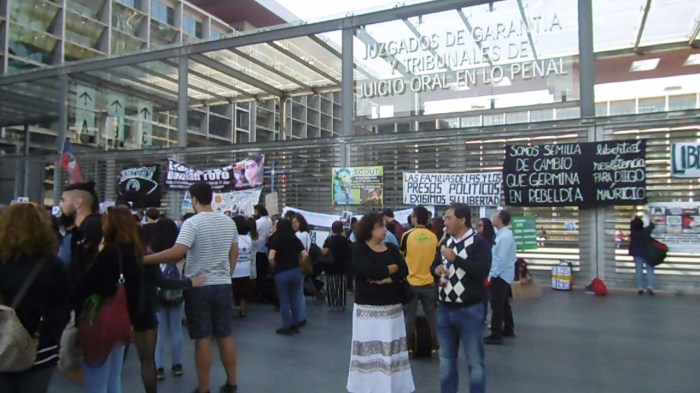 Muriel Torres, pareja de Cristian Sanhueza y cuñada de Rodrigo Sanhueza, hermanos quienes están inculpados por la quema de la iglesia de Carabineros del 2 de enero, afirmó que el Estado los está criminalizando injustamente por algo que no hicieron. «En Chile tienen más de tres mil presos políticos y no los quieren soltar, hoy exigimos la libertad inmediata de los presos políticos», sostuvo Muriel.