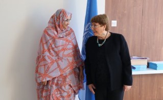 Michelle Bachelet junto a Aminatou Haidar el pasado 28 de febrero de 2020. Foto: Right Livelihood Foundation