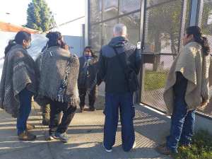 Distintas autoridades tradicionales perteneciente a las diferentes comunidades mapuche en resistencia de Malleco y familiares de los prisioneros políticos mapuche en huelga de hambre, que se encuentran a las afuera de la cárcel respaldando está visita.