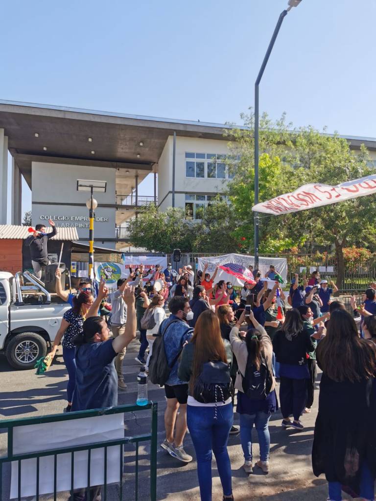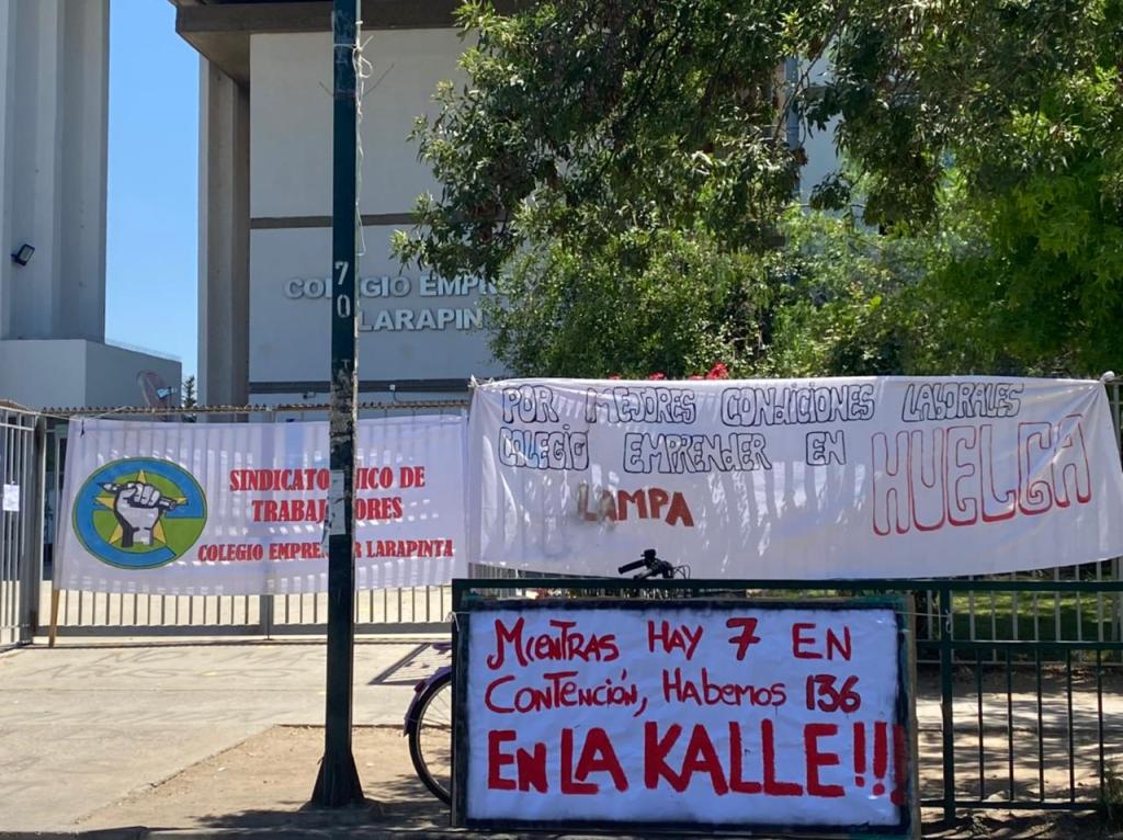 Después de 17 días de huelga, 136 trabajadores y trabajadoras del Colegio Emprender de la comuna de Lampa, nos encontramos de pie exigiendo mejores condiciones económicas y laborales. Lamentablemente nos hemos encontrado con un empleador que no escucha a los trabajadores, apoderados y estudiantes que acompañan y apoyan nuestras peticiones.