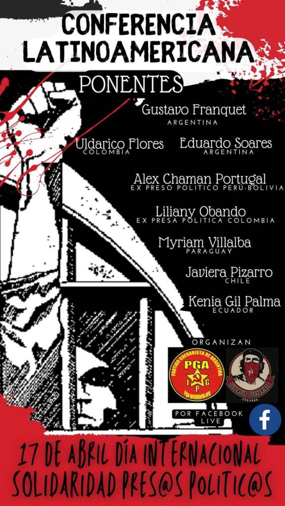 El Día 17 De Abril se conmemora el Día Internacional por la Libertad de las y los Presos Políticos del Mundo, en ese sentido desde la Juventud Guevarista de Ecuador y desde el Partido Guevarista de Argentina convocamos a varios referentes de la lucha por las y los Presos Políticos, abogados y abogadas, Familiares y Militantes que día a día exigen la libertad de quienes han caído en manos del enemigo.