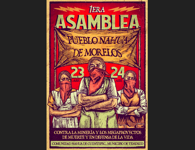 Las comunidades nahuas situadas en el sur de México, llamaron a la primera Asamblea del Pueblo Nahua de Morelos en contra de la Minería y los Megaproyectos y en Defensa de la Vida, con el objetivo de resolver colectivamente las medidas necesarias para defender y conservar sus tierras lejos de los planes de las industrias del extractivismo, como los negocios mineros, los energéticos que envenenan las aguas, los inmobiliarios y las grandes construcciones, como el llamado Proyecto Integral Morelos, PIM.