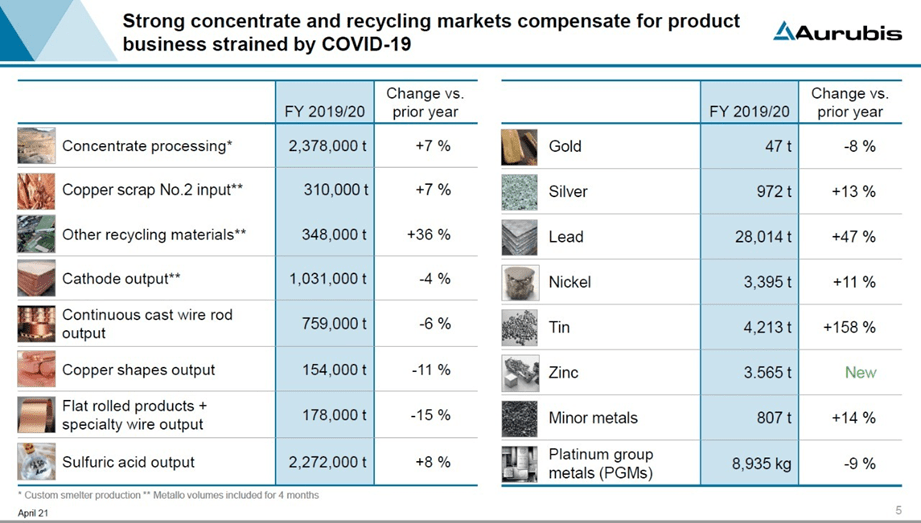 Otra fuente de información sobre la relación, concentrado de cobre embarcado y subproductos, son las refinerías. Ahora bien existe el resultado que nos presenta la refinería Aurubis (Hamburgo, Alemania) en su informe “Metal for Progress” 23 de marzo 2022, el procesamiento se refiere a 15 subproductos donde la relación del concentrado, según el quantum (incluyendo el cátodo), corresponde a 38% de mineral de cobre y 62% de subproductos. Los subproductos en la información se refieren a desechos, reciclaje, alambrones, coppershapes, cátodos, planchas de cobre, ácido sulfúrico, oro, plata, plomo, níquel, estaño, zinc, metales menores y platino. Tres de subproductos, oro, plata y níquel, corresponden 0.1% del quantum del concentrado en toneladas, pero representan 97,1% del valor del mercado del total de los subproductos, medidos a precios de mercados vigentes a la tercera semana de abril (2022). El Informe de Aurubis está fechado en 2022, pero los minerales procesados se refieren al período 2019-2020, véase en la página 6 del Informe Aurubis AG el cuadro titulado “Fuertes mercados de concentrados y reciclaje compensan el tenso negocio de productos a consecuencia del Covid-19” Año 2019/2020 (Strong concentrate and recycling markets compensate for product business strained by Covid-19).