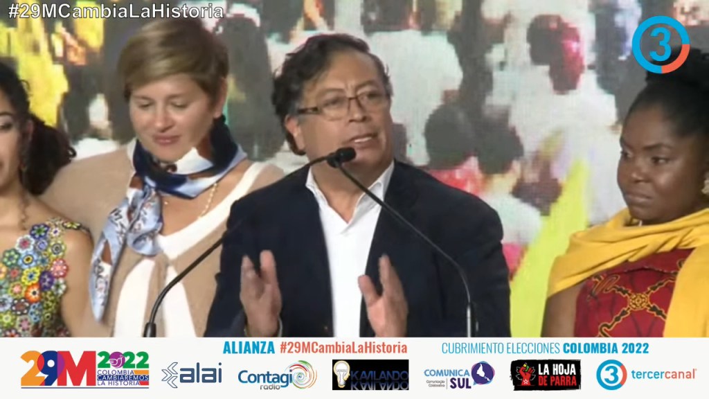 Los comicios presidenciales realizados este 29 de mayo arrojaron como resultado la victoria de la composición política progresista Pacto Histórico, liderada por el candidato a Presidente Gustavo Petro y a la Vicepresidencia, Francia Márquez, con más de un 40% de los votos, equivalente a más de 8 millones y medio de sufragios; seguidos por la llamada Liga de Gobernantes Anticorrupción, un compuesto de derecha encabezado por Rodolfo Hernández y su fórmula vicepresidencial Marelen Castillo que obtuvieron poco más de 28% de las preferencias, equivalente a cerca de 6 millones de papeletas. Así, tanto Petro como Hernández serán los competidores del balotaje a efectuarse el próximo 19 de junio.