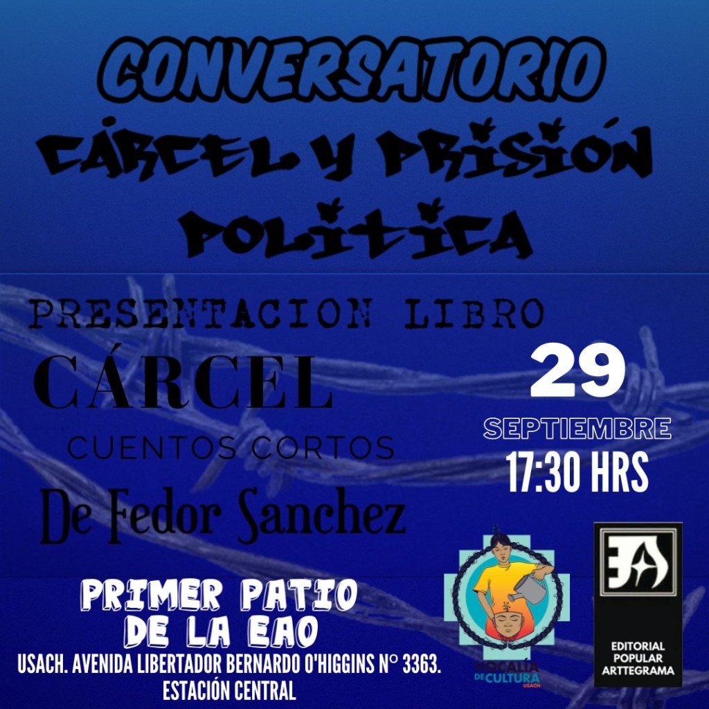 «Cárcel, cuentos cortos», tiene mucho que decir, opinar e inspirar, es por estas razones que se abre espacio en esta tercera presentación en una de las universidades más combativas y resistentes de este país. Porque es un libro necesario, de letras urgentes, la vocalía de cultura de la USACH recibe estas letras para mediar su difusión y debate mediante un conversatorio al inicio del lanzamiento, llamado “Cárcel y prisión política”.