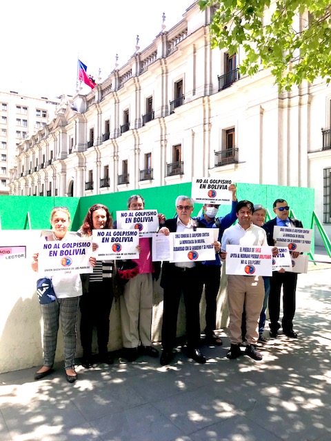 Este lunes 7 de noviembre, la Unión Bicentenaria de los Pueblos-Capítulo Chile (UBP-Chile), que agrupa a diversas organizaciones sociales y políticas, y dirigentes progresistas y de izquierda, mediante una carta entregada en La Moneda demandó que el Presidente Gabriel Boric Font se pronuncie y condene públicamente los delicados acontecimientos que viene sufriendo la democracia y la estabilidad social del Estado Plurinacional de Bolivia, liderado por el Presidente Luis Arce y su Vicepresidente David Choquehuanca.