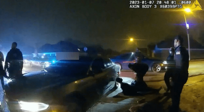 Imágenes de la cámara corporal de policías muestran a los agentes caminando mientras Tyre Nichols se desplomaba en el suelo.