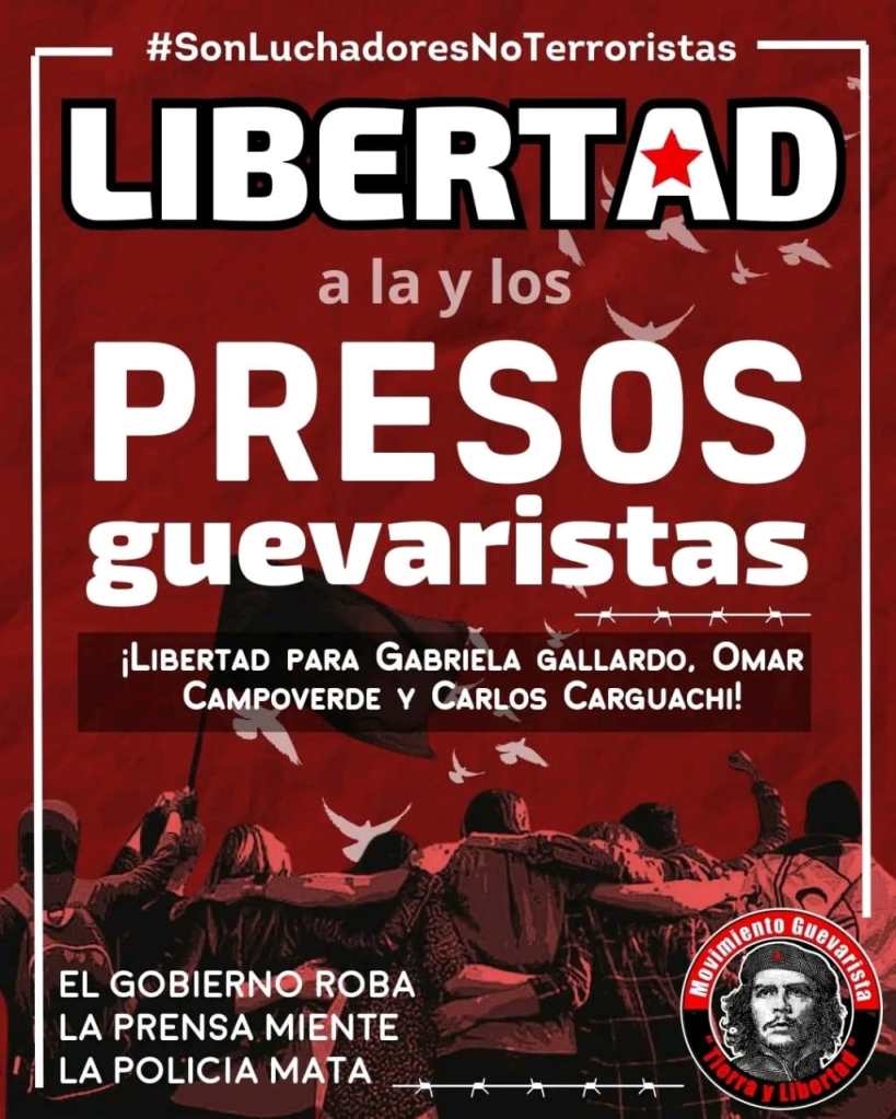 Exigimos que este tipo de personajes, que ya han demostrado ser elementos nefastos en la politica nacional, dejen de enviar sus misivas mañosas para darle justificación a la violenta represión que pretende instaurar el gobierno a través del decreto ejecutivo 730. Las y los guevaristas hemos demostrado que somos inocentes de sus absurdas acusaciones y los seguiremos demostrando con la pronta liberación de lxs 3 camaradas secuestrados por un falso positivo judicial.