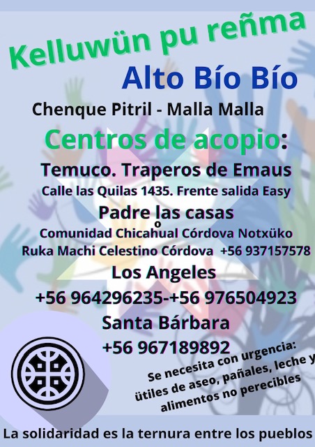 Esperando se encuentren todos bien al leer este mensaje. Lamentablemente no todos los lamngen y peñi pueden decir lo mismo, a causa del temporal que hemos vivido recientemente. Actualmente, las comunidades en recuperación del Alto Biobío Chenque Pitril y Malla Malla están viviendo el abandono de parte de la institucionalidad winka. Y nosotros como mapuche no podemos seguir el mismo ejemplo, si no todo lo contrario.