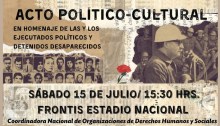 Este sábado 15 de julio, desde las 15:30 horas, en el Frontis del Estadio Nacional, se realizará un homenaje a las y los ejecutados políticos y detenidos desaparecidos quienes fueron asesinados en la dictadura cívico-militar. La Actividad ha sido convocada por la Coordinadora Nacional de Organizaciones Sociales y de Derechos humanos donde participan la AFEP,…