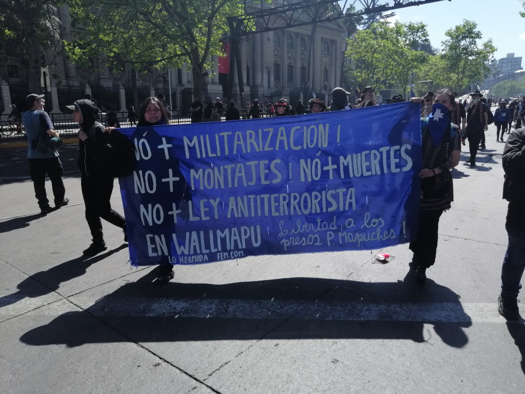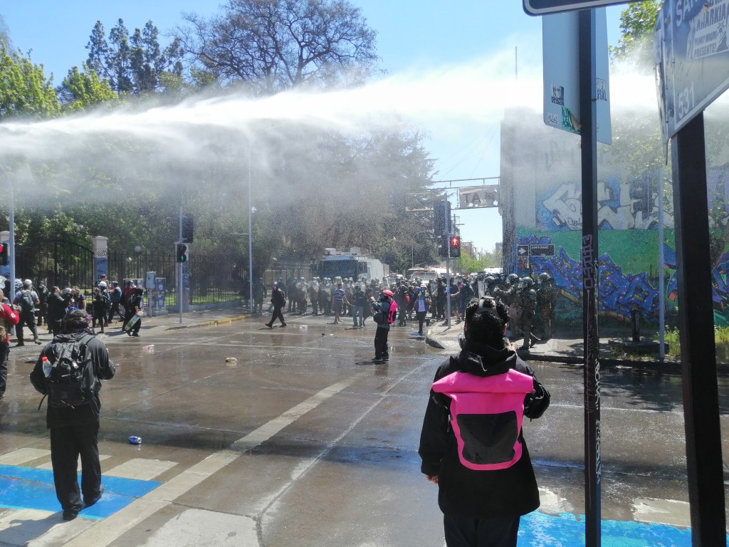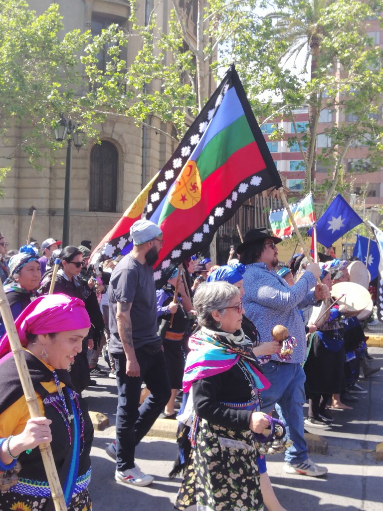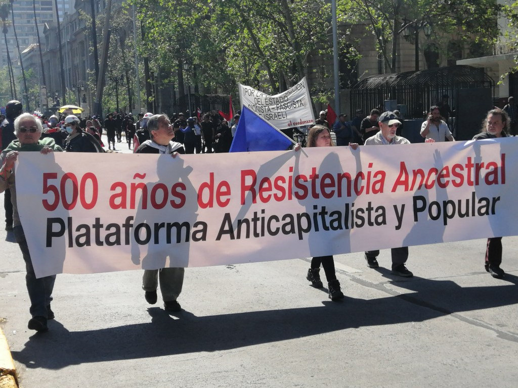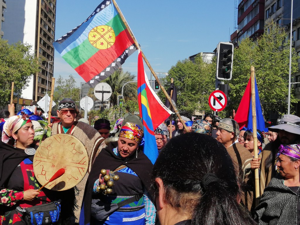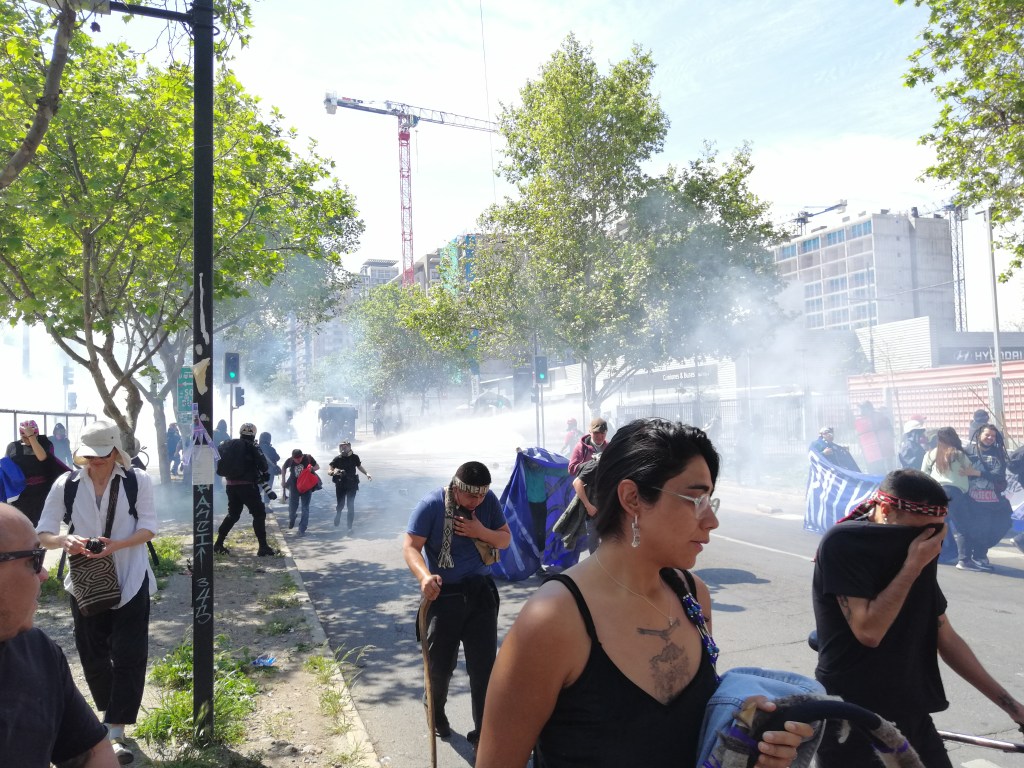 Alrededor de dos mil personas marcharon en el Día Internacional de los Pueblos Originarios, este 9 de octubre, desde las 10 de la mañana, haciendo una ruta que arrancó en la Plaza Dignidad, avenida Alameda, calle Santa Rosa, Santa Isabel, hasta el Parque Almagro, en el centro de Santiago de Chile. Sin embargo, en el transcurso de la caminata que concitó agrupaciones y autoridades mapuche y gente no mapuche solidaria con la causa de la autonomía y el territorio para el pueblo de Leftraru, los asistentes fueron violentamente reprimidos por las Fuerzas Especiales de Carabineros (policía militarizada). La represión empleó innumerables coches lanzaaguas que arrojaron un líquido mezclado con químicos altamente tóxicos, y blindados de guerra para disparar bombas lacrimógenas antimotines, fragmentando la marcha y asfixiando personas, situación agravada debido a que en ella participaron niños y niñas que viajaron desde sus comunidades ancestrales, así como personas mayores.