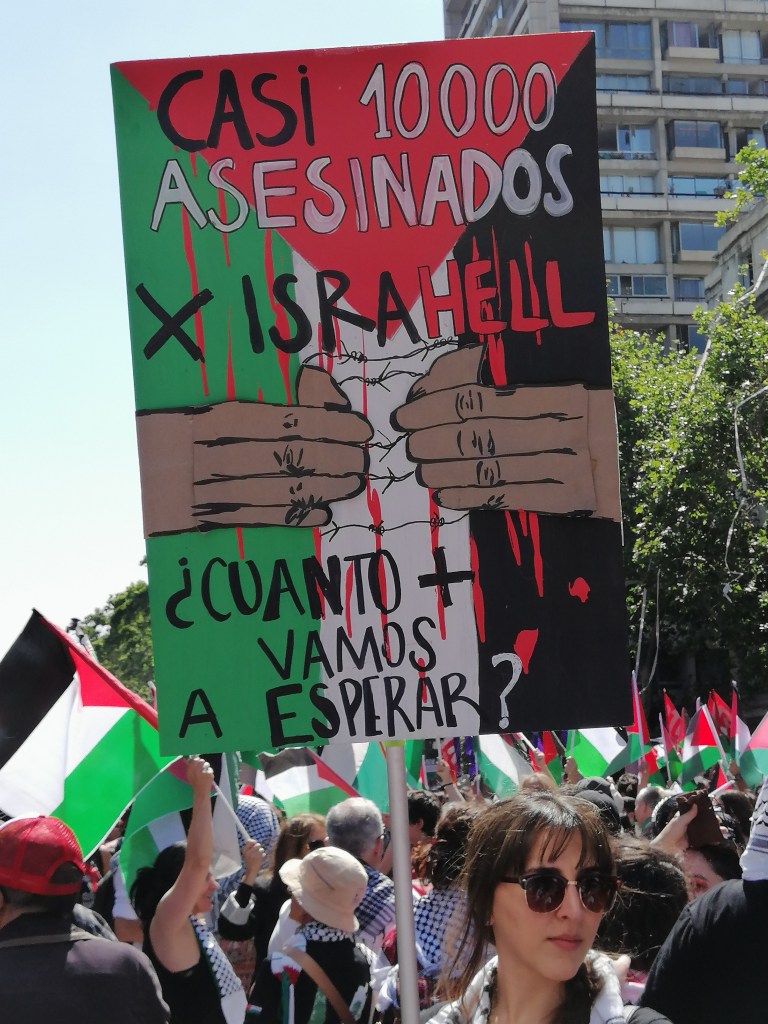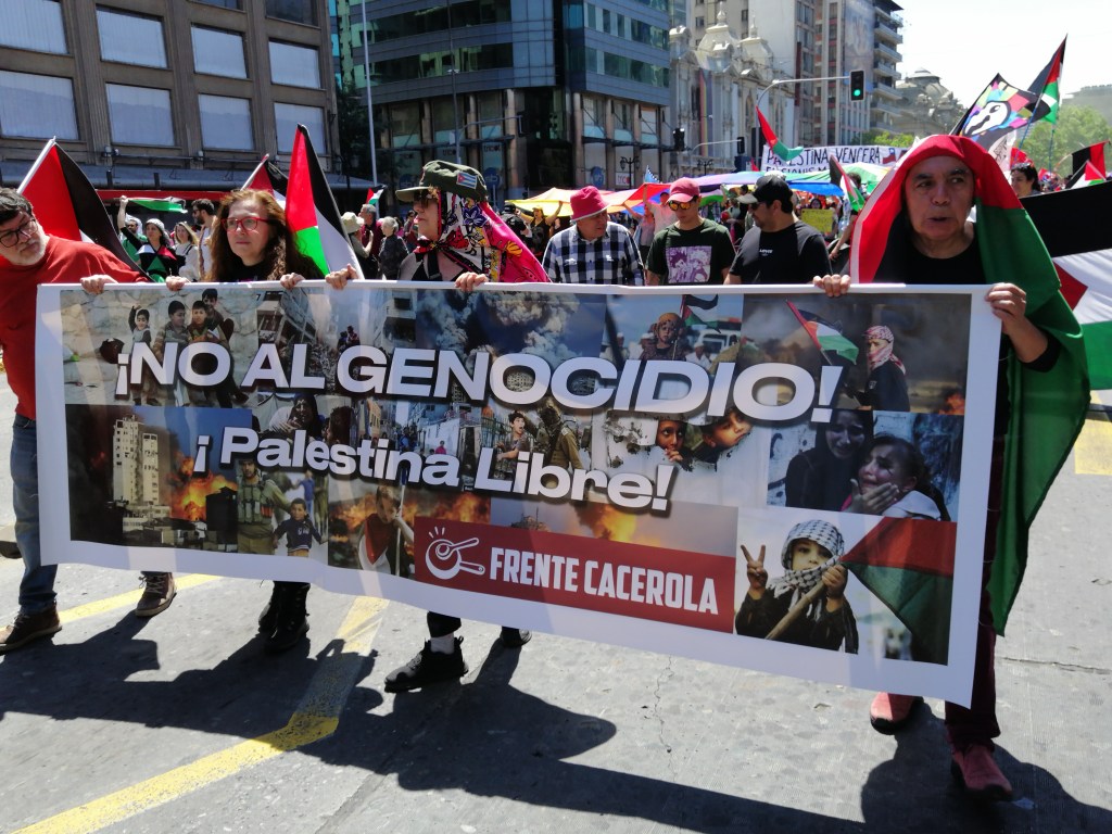 En Santiago, capital de Chile, miles de personas solidarizaron con la causa palestina, pidiendo el cese de los criminales bombardeos e instando a las autoridades locales, a romper relaciones con el Estado genocida de Israel.