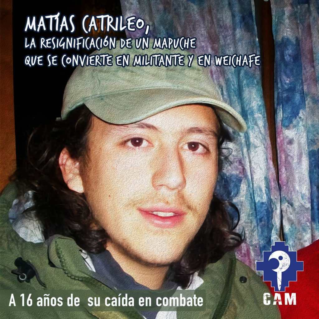 Matías, estamos plenamente convencidos que tu sacrificio no fue en vano, tu pullü como weichafe sigue alimentando de Newen a nuestra militancia, aquella que resiste armada en el control territorial defendiendo las recuperaciones de tierras, así como en la prisión política manteniendo día a día la dignidad de la causa autonomista.