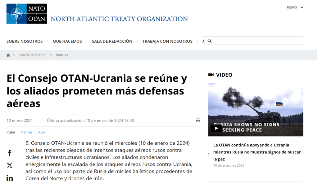 En un comunicado emitido este miércoles tras una reunión del Consejo OTAN-Ucrania, se precisa que «los aliados ya han entregado una amplia variedad de sistemas de defensa aérea a Ucrania y hoy reafirmaron su compromiso de seguir reforzando su defensa«.