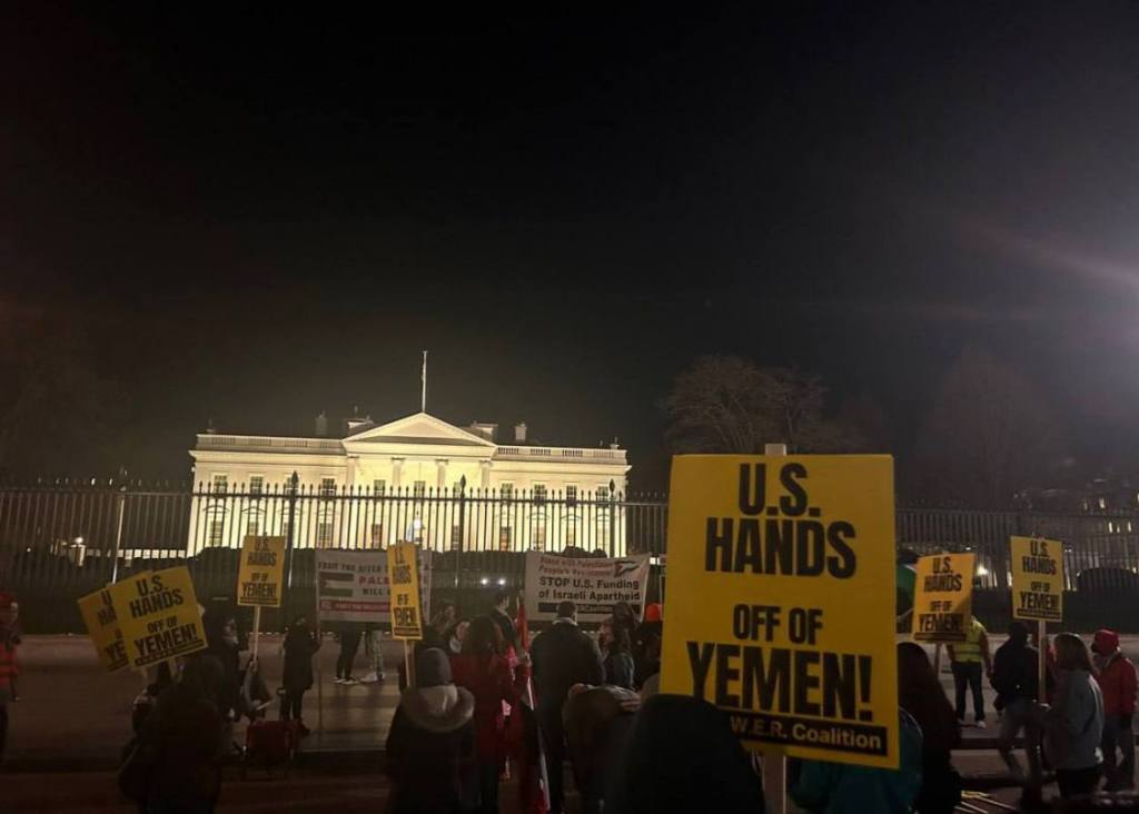 Un grupo de activistas estadounidense se manifestaron frente a la Casa Blanca, en Washington, en repudio de los ataques de EE.UU. y el Reino Unido contra Yemen.