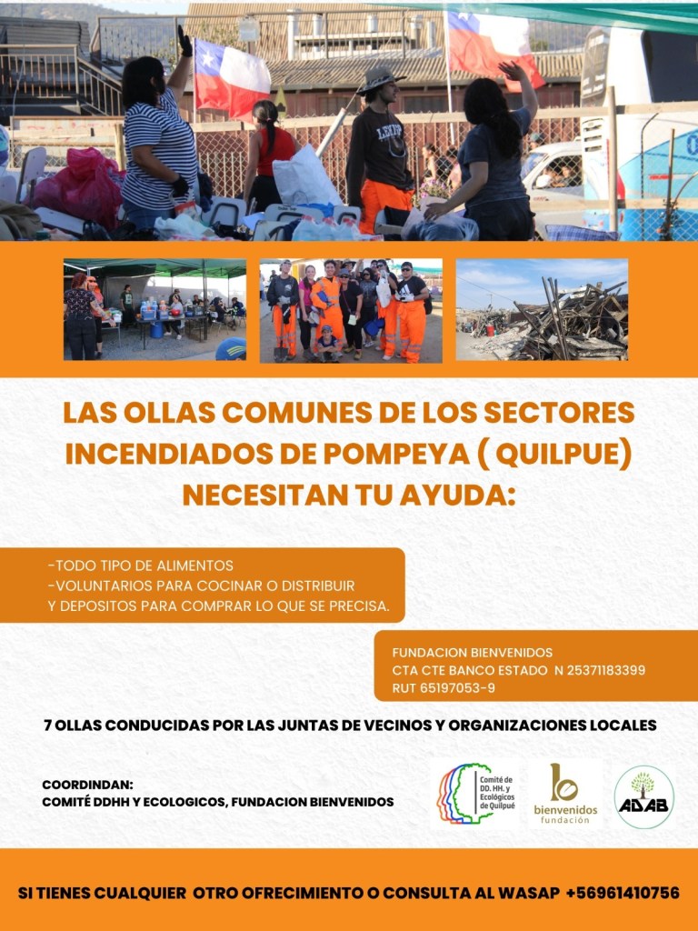 Apoya a las Ollas Comunes de los sectores incendiados de Pompeya (Quilpué) solidaridadsiempre / 19 febrero, 2024 Comparte esto: Haz clic para compartir en X (Se abre en una ventana nueva) X Haz clic para compartir en Facebook (Se abre en una ventana nueva) Facebook Me gusta Cargando...