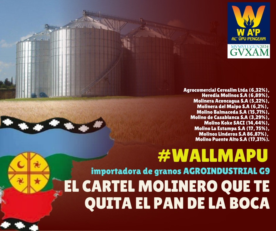 En lo importante, el trigo cultivado por originarios y campesinos pobres ha llegado a precios históricamente bajos, debido a que al gran empresariado asociado a los supermercados, se suman ahora las molineras que, carroñería mediante, se instalan a esperar alrededor de los puertos y acaparar la materia prima para fijar los precios en desmedro de la producción nacional, cuyas mayores extensiones de siembra se desarrollan en Wallmapu.
