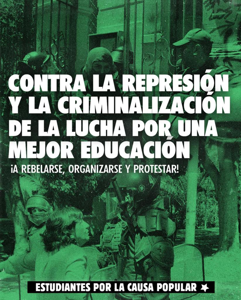 Desde cada trinchera, en liceos, institutos y universidades volvamos a formarnos como un solo puño de combate para dar luchas cada vez más grandes.