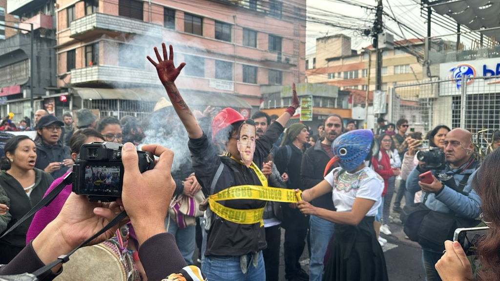 «En #PaloQuemado, la situación es crítica. La fuerza policial y militar ha sitiado la zona, y las declaraciones del Comando Conjunto de las Fuerzas Armadas han exacerbado la violencia estatal. Bajo el pretexto de la inseguridad, el Estado arremete violentamente contra los pueblos y nacionalidades que ejercen su legítimo derecho a la protesta en rechazo a la minería».