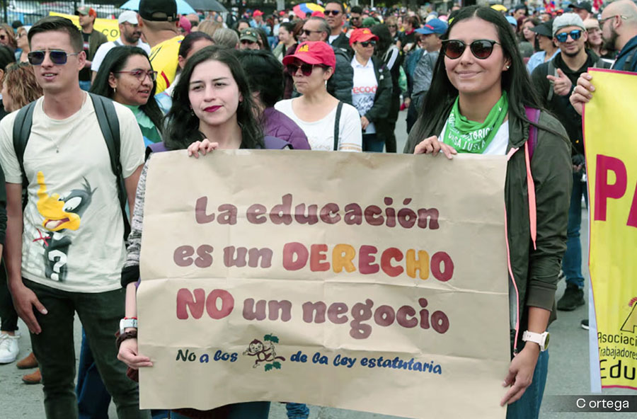 Cuando docentes, estudiantes y miles de colombianos están movilizados para hundir un proyecto educacional de ley estatutario abiertamente neoliberal y exigir una normativa de estatutos que concrete el derecho social a una educación pública gratuita, universal y de excelencia, el Comando Central del Ejército de Liberación Nacional, ELN, explicó que «El proyecto radicado por el Gobierno buscaba declarar le educación en todos los niveles como un derecho fundamental y una mayor financiación estatal de la educación pública. Sin embargo, en el paso por el Senado la oposición de extrema derecha introdujo numerosas modificaciones al articulado con la finalidad de facilitar aún más la mercantilización y privatización de la educación».