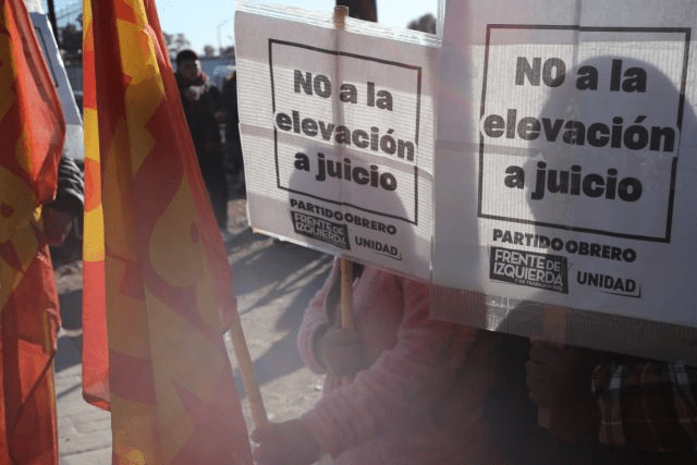 “Estamos exigiendo que no se eleve a juicio esta causa y el inmediato sobreseimiento de los compañeros, en defensa de las libertades democráticas. Esta causa se originó a raíz de detenciones ilegales mientras los compañeros exigían su derecho a la protesta, es lisa y llanamente una persecución. Las detenciones fueron arbitrarias y los detenidos fueron seleccionados, nos persiguen porque somos quienes luchamos contra el ajuste de todos los gobiernos y los primeros en saltar el cerco del protocolo antipiquetes de Bullrich”.