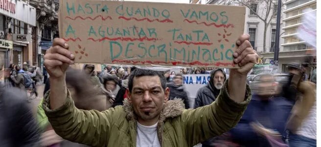 “Hay pocas políticas que estén pensadas para mejorar; es muy difícil, hay un millón de cosas que hacen dudar de que algún día va a haber una solución real”, reflexionó el representante de la coordinadora. A su vez, explicó que las escobas que se utilizaron en la marcha son parte de una “crítica” nacida en “la indignación de los trabajos protegidos”. “Protegidos para quién, por quién, de qué”, cuestionó. Por otro lado, detalló que la cinta rosada –atada en los brazos de muchos de los presentes– representa para los colectivos el “autocuidado” que ejerce hacia sí misma la comunidad en situación de calle.