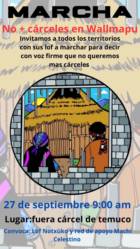 Por eso los invitamos a marchar juntos este 27 de septiembre. Nos juntamos frente a la cárcel de Temuco a las 9 de la mañana.