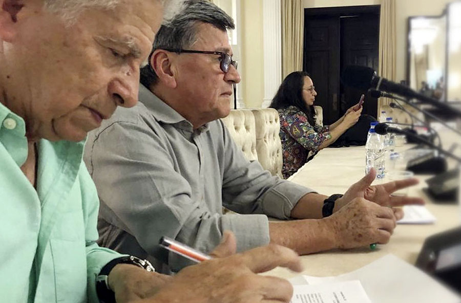 En el día de hoy, la Delegación de Diálogos del Ejército de Liberación Nacional (ELN), realizó la presente Declaración de principios, ante los delegados del gobierno nacional, de los países garantes y acompañantes, del Enviado Especial del Secretario General de la ONU y de la Conferencia Episcopal de Colombia, para aportar al diagnóstico de los problemas y de las soluciones conjuntas que exigen el estado de congelamiento en que se encuentra la Mesa de conversaciones, con la voluntad de superarlo cuanto antes.