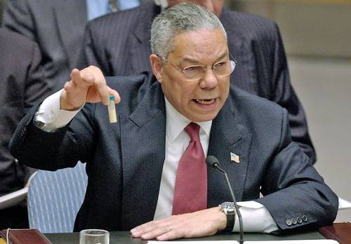 El 5 de febrero de 2003, el secretario de Estado de Estados Unidos, Colin Powell, se dirigió al Consejo de Seguridad de las Naciones Unidas para justificar la invasión estadounidense de Iraq al mes siguiente. Afirmó que el presidente iraquí, Sadam Husein, y su régimen ocultaban armas de destrucción masiva. Powell declaró posteriormente que lamentaba estas declaraciones.