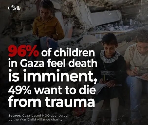 En el caso específico, un estudio revela el temor generalizado a la muerte que la guerra israelí en Gaza ha infundido en corazones de los niños de la franja de Gaza costera. La investigación, cuyos resultados se publicaron este miércoles 11 de diciembre, fue realizada por el Centro Comunitario de Formación para la Gestión de Crisis, una ONG con sede en Gaza, y la organización benéfica War Child Alliance, con sede en Londres.