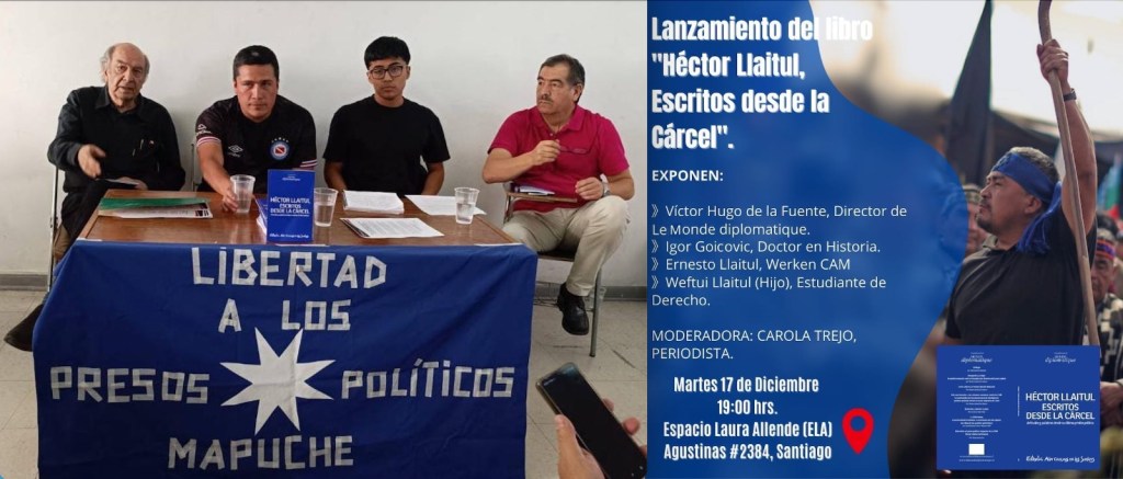 Días antes de finalizar el año 2024 y con una masiva concurrencia, se lanzó el último libro del werken y líder histórico de la Coordinadora Arauco Malleco, Héctor Llaitul, condenado por el Estado chileno a 23 años de presidio, 15 de ellos por delitos contra la ley de seguridad del Estado. La obra llamada «Escritos desde la cárcel. Artículos y palabras desde su última prisión política», tiene 68 páginas, y fue publicada por la editorial Aún Creemos en los Sueños, dependiente de la edición chilena de Le Monde Diplomatique.