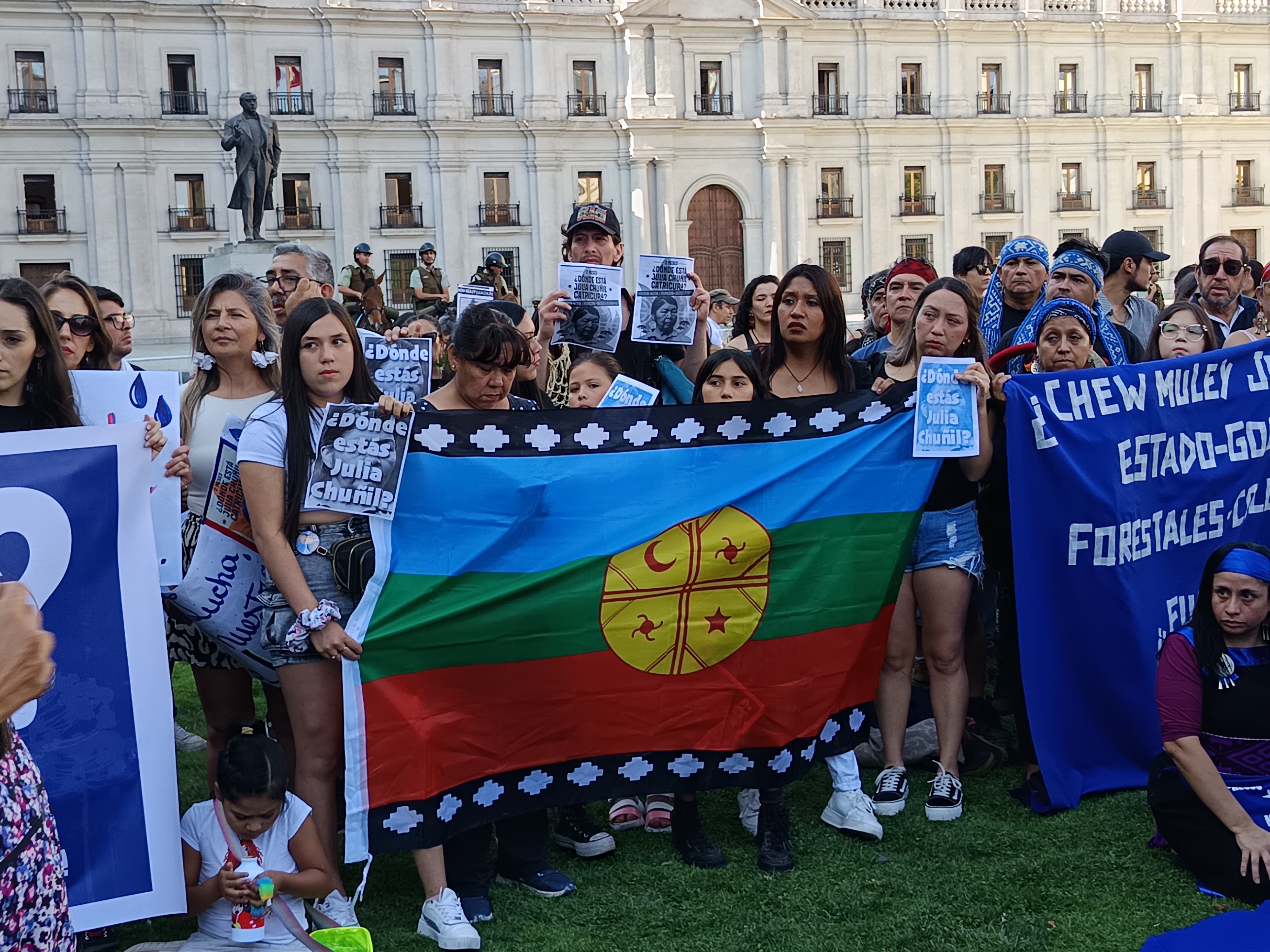 Fotos: Protesta en frente del Palacio presidencial de La Moneda por Julia Chuñil desaparecida hace dos meses. Fotos. Pablo Ruiz
