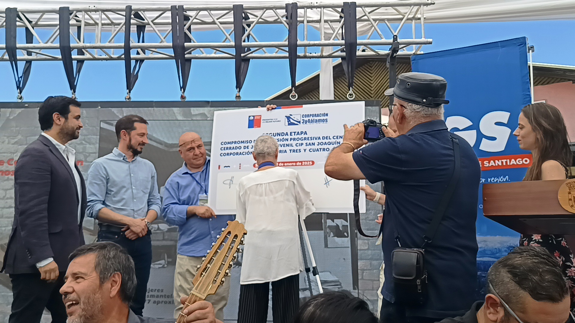 En el encuentro, los ministros de Justicia y de Bienes Nacionales hicieron entrega de la segunda etapa del sitio de memoria que consiste en la antigua casona y del patio de visitas que en adelante serán administrados por la Corporación de 3 y 4 Álamos para convertirlos en espacios para la memoria y la defensa de los derechos humanos.
