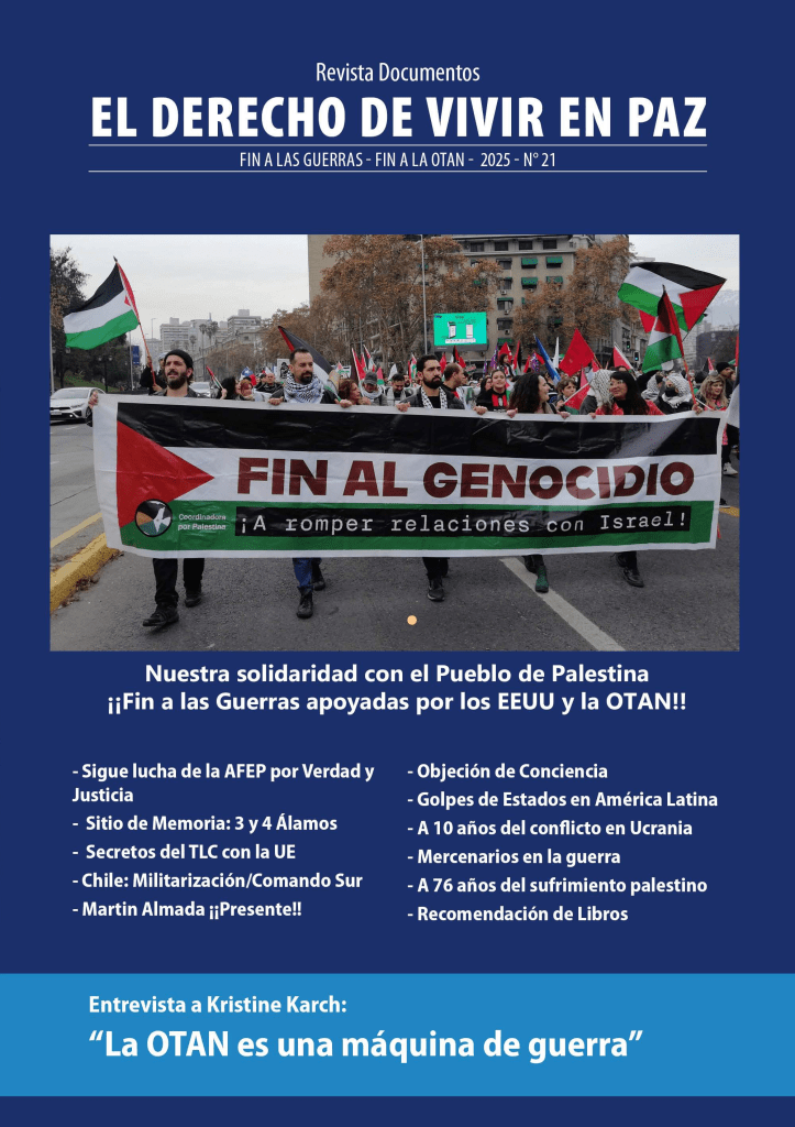 En sus manos está la Revista El Derecho de Vivir en Paz, número 21, donde compartimos parte de la historia y lucha de la Agrupación de Familiares de Ejecutados Políticos (AFEP) y del Campo de Concentración de 3 y 4 Álamos. Ambas organizaciones han venido trabajando intensamente para que en Chile no reine el olvido ni el negacionismo sino la verdad, la justicia, y la memoria.