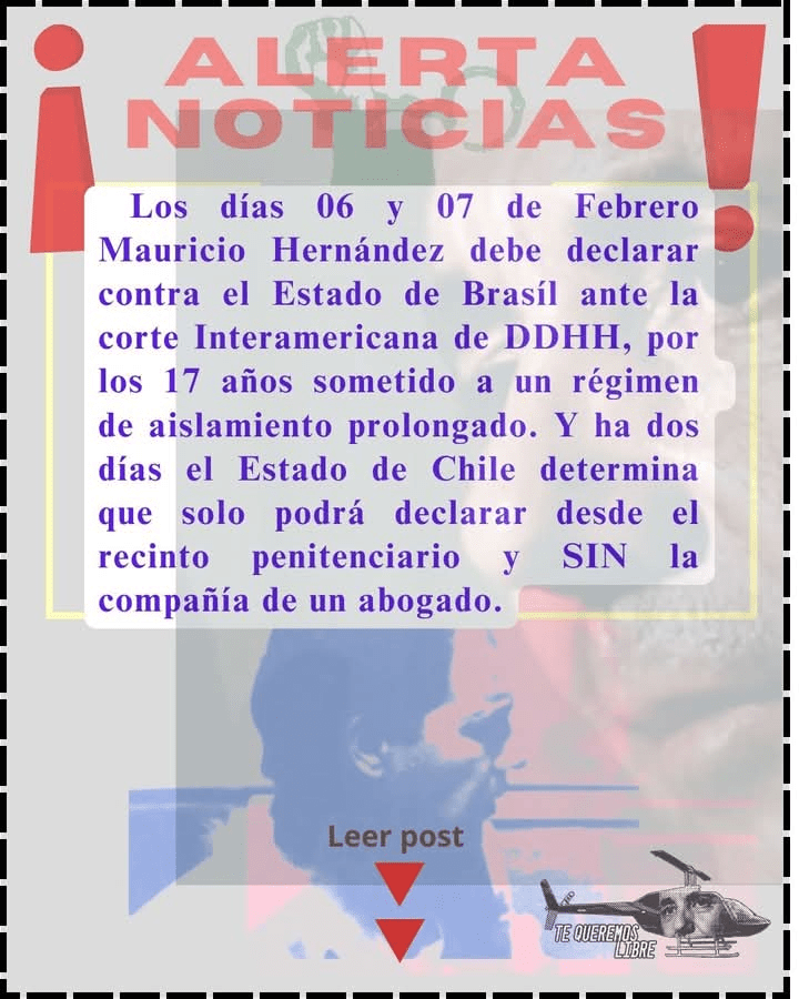 A pesar de la inminencia de la audiencia, el Estado de Chile no ha facilitado su comparecencia. Solo a dos días del proceso, se decidió que Hernández Norambuena podrá declarar desde el recinto penal donde se encuentra detenido, pero sin la presencia de la abogada @yaniragonzalezh, lo que podría afectar el adecuado desarrollo de su testimonio.
