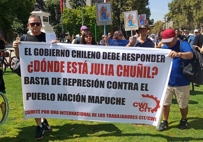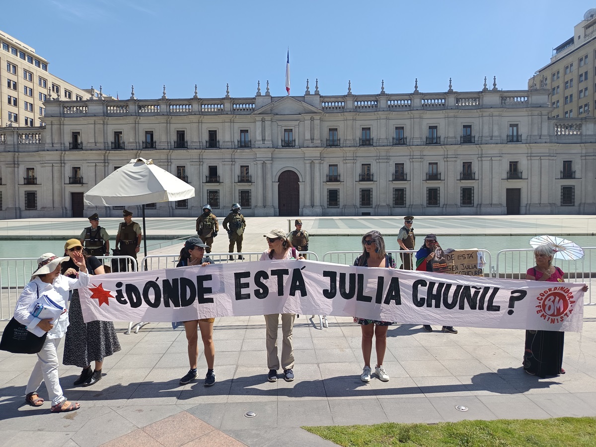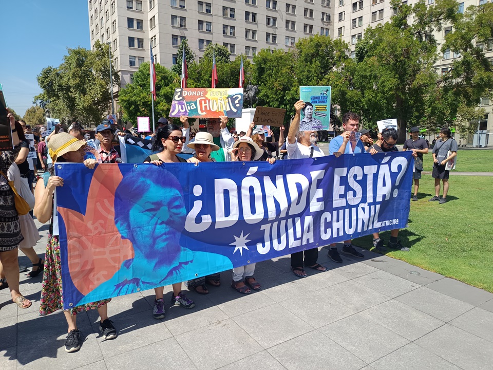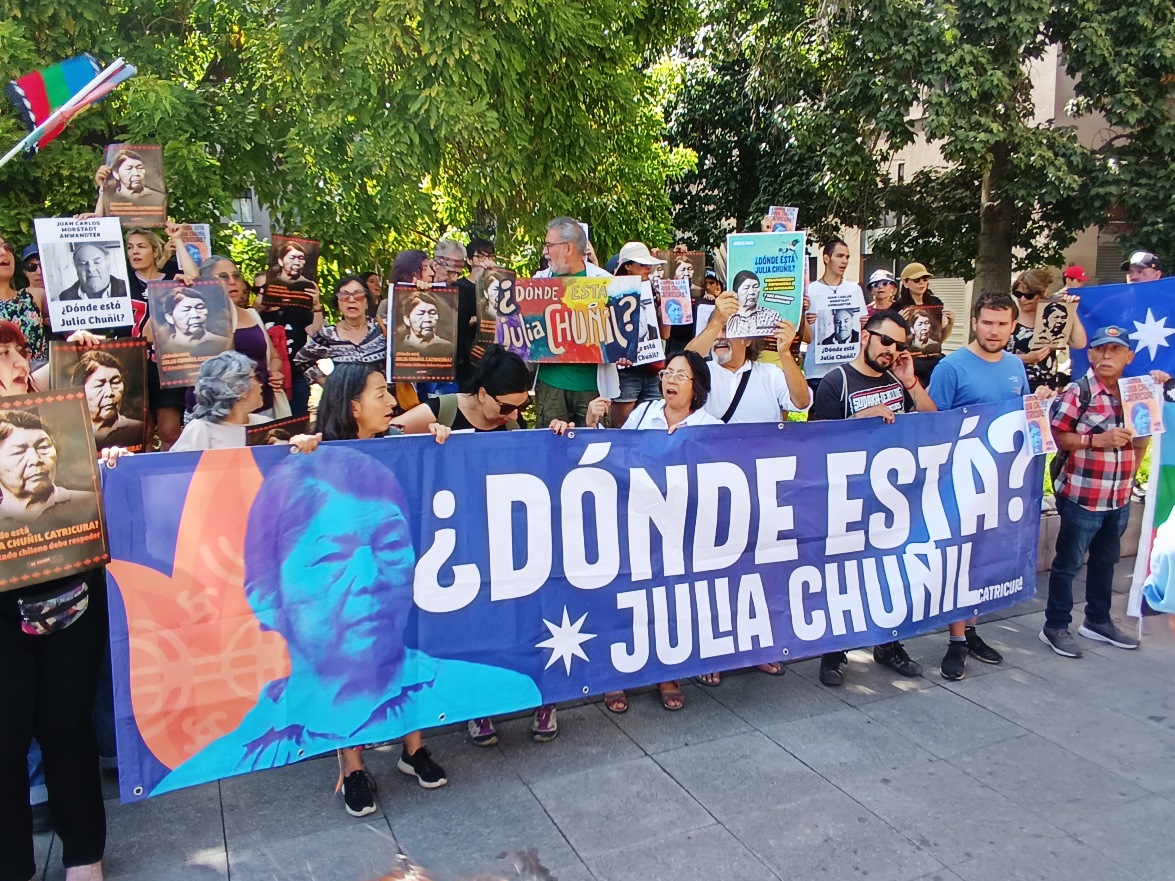 «Hoy 8 de febrero 2025 al cumplirse 3 meses de su desaparición forzada de la papay Julia Chuñil Catricura y su perro cholito, muchas voces se han alzado pidiendo, exigiendo la aparición de ella. Sin embargo los poderes del Estado no le han dado la misma importancia ni rapidez como a otros casos de desaparición ¿Porque es una mujer Mapuche defensora del territorio ? En este caso vemos una vez más a la justicia actuar de una forma clasista y racista».