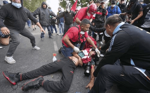 La represión comenzó cuando aún marchaban sólo los jubilados –que rechazan los recortes a sus pensiones y las medidas económicas de Milei, como lo hacen todos los miércoles– y se extendió contra manifestantes que intentaban llegar a la Plaza de los Dos Congresos. Se sumaron los clubes de barrio integrados por fanáticos de Boca Juniors, River Plate y otros equipos de primera y segunda divisiones, sindicalistas de la Confederación General del Trabajo, de la Central de Trabajadores Argentinos y otros sectores, para no dejarlos solos.