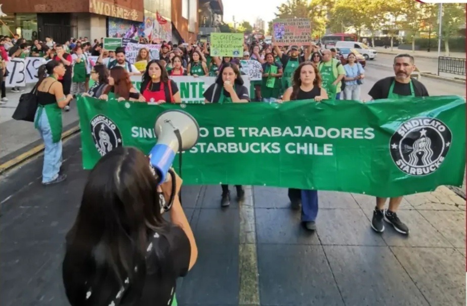 Cientos de personas marcharon por la Alameda, desde el GAM hasta La Moneda. Una marcha inédita para el sector de la comida rápida en Chile, donde además de cientos de trabajadores de Starbucks, se hicieron presentes diversos sindicatos y organizaciones que hoy se encuentran apoyando la movilización. Participaron las organizaciones e trabajadores del Sindicato de Ripley, Sindicato de Saba, Sindicato Sanitas, Sindicato del GAM, y del Sindicato Viña San Pedro, y organizaciones como la Coordinadora 8M, el Comité por Palestina de la Universidad de Chile, el PTR, Pan&Rosas, Vencer, la AIT, el MST, el MPO y la Plataforma Anticapitalista y Popular.