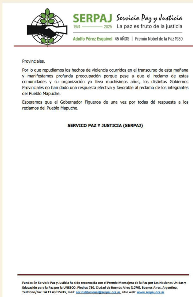 Cuatro comunidades mapuches de Neuquén se encadenaron en la Casa de Gobierno y fueron desalojados por la policía. Compartimos la siguiente declaración de SERPAJ Argentina.