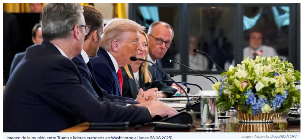 En el encuentro con el presidente Trump, también participaron varios líderes europeos: el presidente de Francia, Emmanuel Macron; el canciller de Alemania, Friedrich Merz; el primer ministro del Reino Unido, Keir Starmer; la primera ministra de Italia, Giorgia Meloni; el presidente de Finlandia, Alexander Stubb; el secretario general de la OTAN, Mark Rutte; y la presidenta de la Comisión Europea, Ursula von der Leyen. (RT)