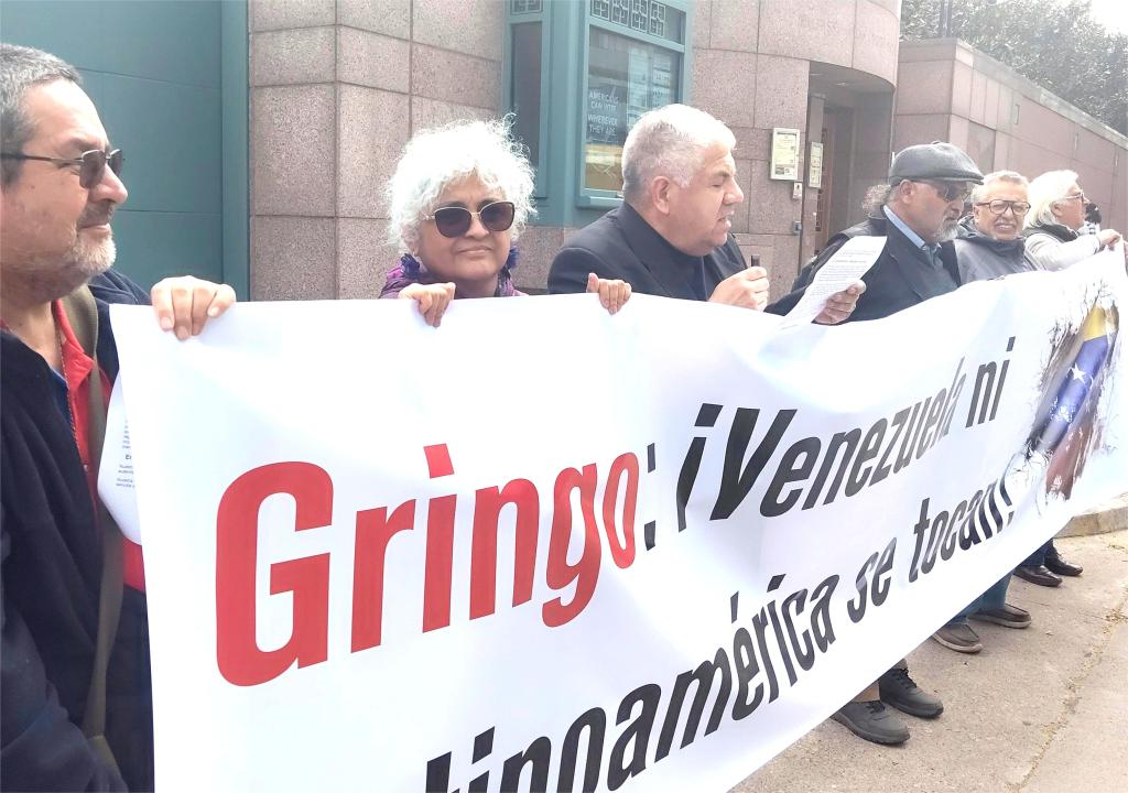 Este 17 de septiembre, un grupo de luchadores sociales se apostó en el ingreso de la embajada de Estados Unidos en Santiago de Chile, con el propósito de protestar contra el injerencismo militarista, político, económico y cultural del imperio de norte sobre el pueblo y gobierno de Venezuela.