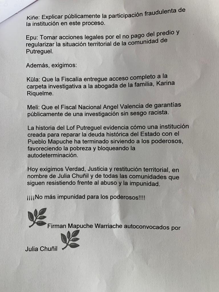 Denunciamos la participación fraudulenta de la CONADI en la compra y venta del terreno ubicado en Putreguel, comuna de Máfil, territorio ancestral, donde se encuentra un Bosque nativo y un eltun (cementerio mapuche) de alto valor espiritual y cultural.