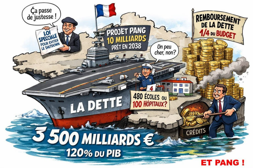 En Washington, un bloqueo presupuestario paraliza las agencias federales (shutdown); en París, seguimos anunciando orgullosos un buque de guerra high-tech “garante de nuestro poderío” mientras no podemos cerrar las cuentas de la Nación. ¿Dónde está la trampita?