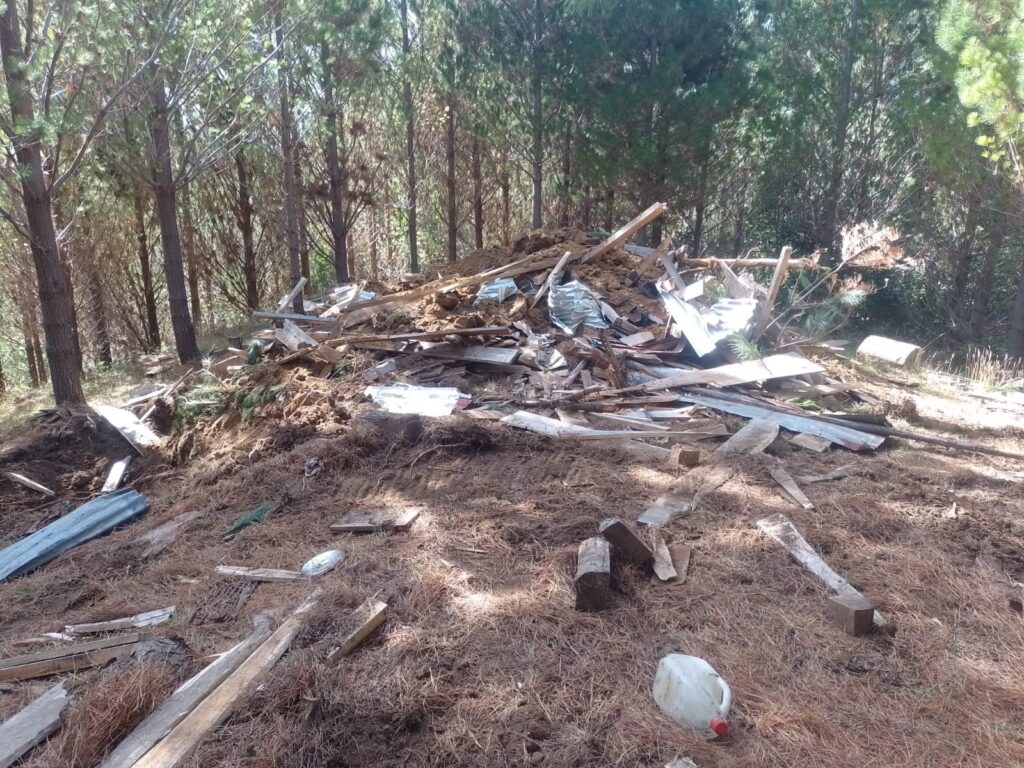 Por la tarde, el Lof denunció la destrucción de sitios sagrados ceremoniales, espacios de siembra y las rukas construidas en el territorio en recuperación: «Los winka trewa no tienen nada de respeto, destruyeron todo, las Sruka, el sitio ceremonial, el malal donde teníamos nuestra siembra, pero lo más importante que estamos bien todos los integrantes del lof. No se llevaron a nadie. Mañum a todos los que se han preocupado y han estado preguntando. Como Lof seguimos de pie».